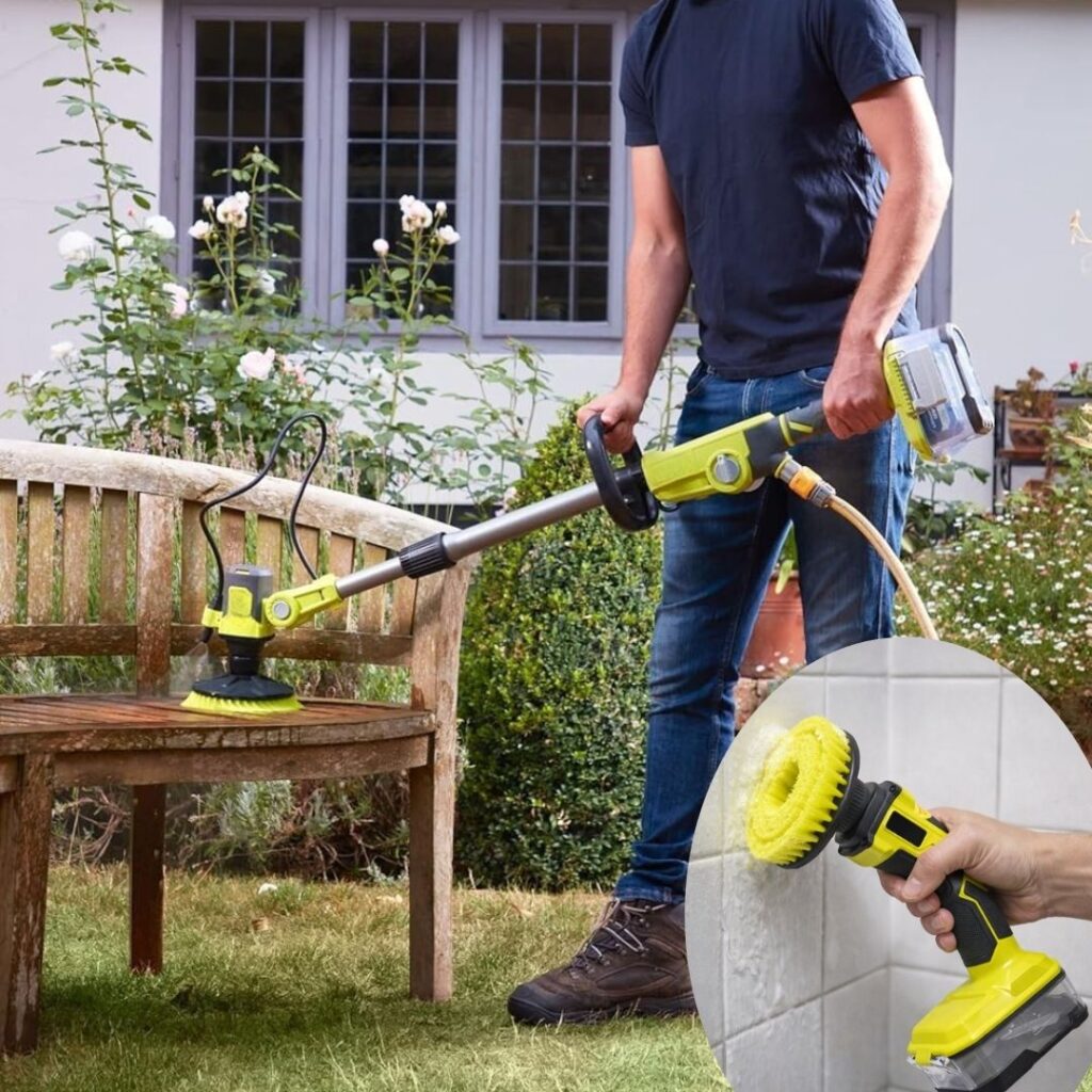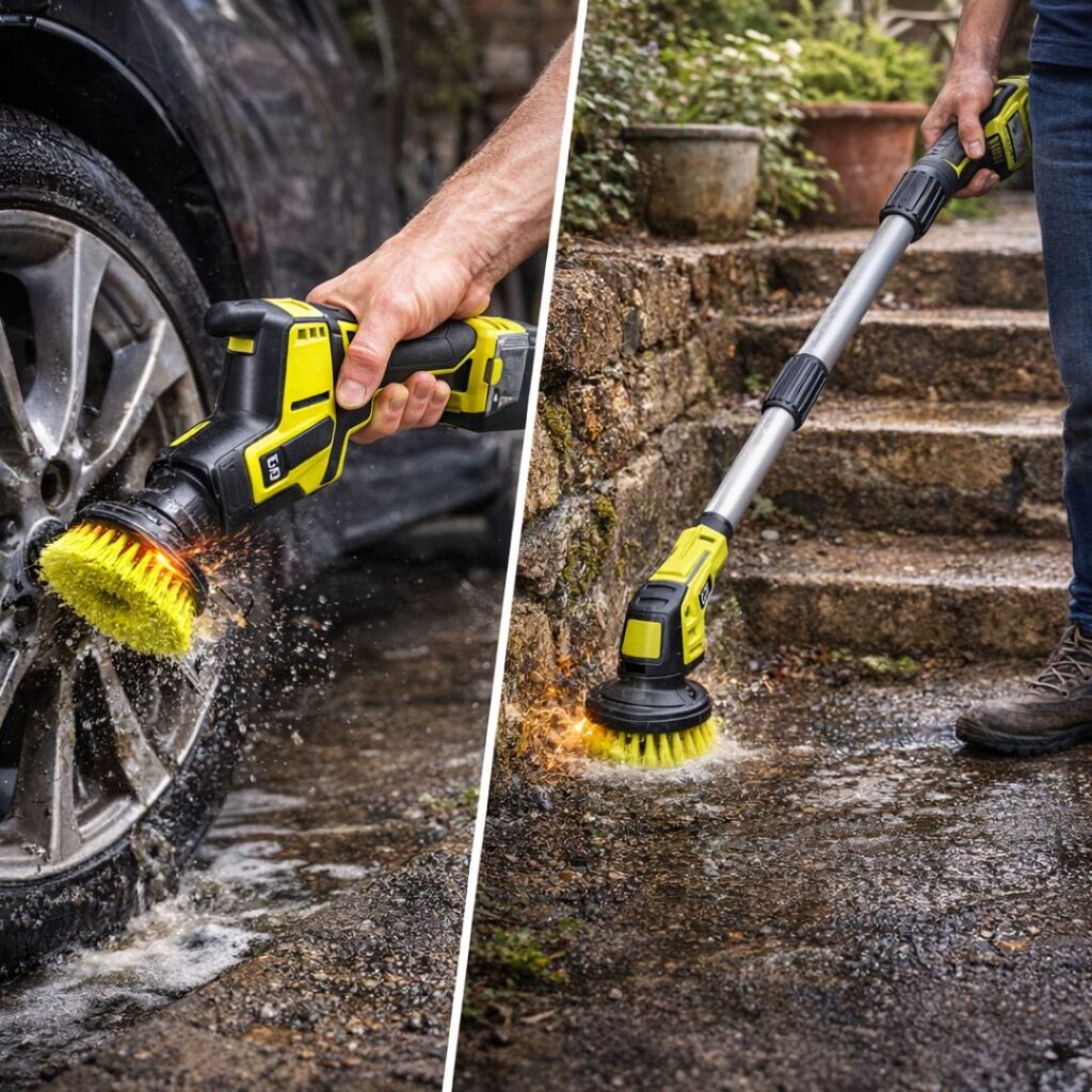 Rotazione potente per eliminare lo sporco ostinato su piastrelle, parquet, terrazzi, fughe, box doccia, garage e persino auto – senza fili e senza fatica.